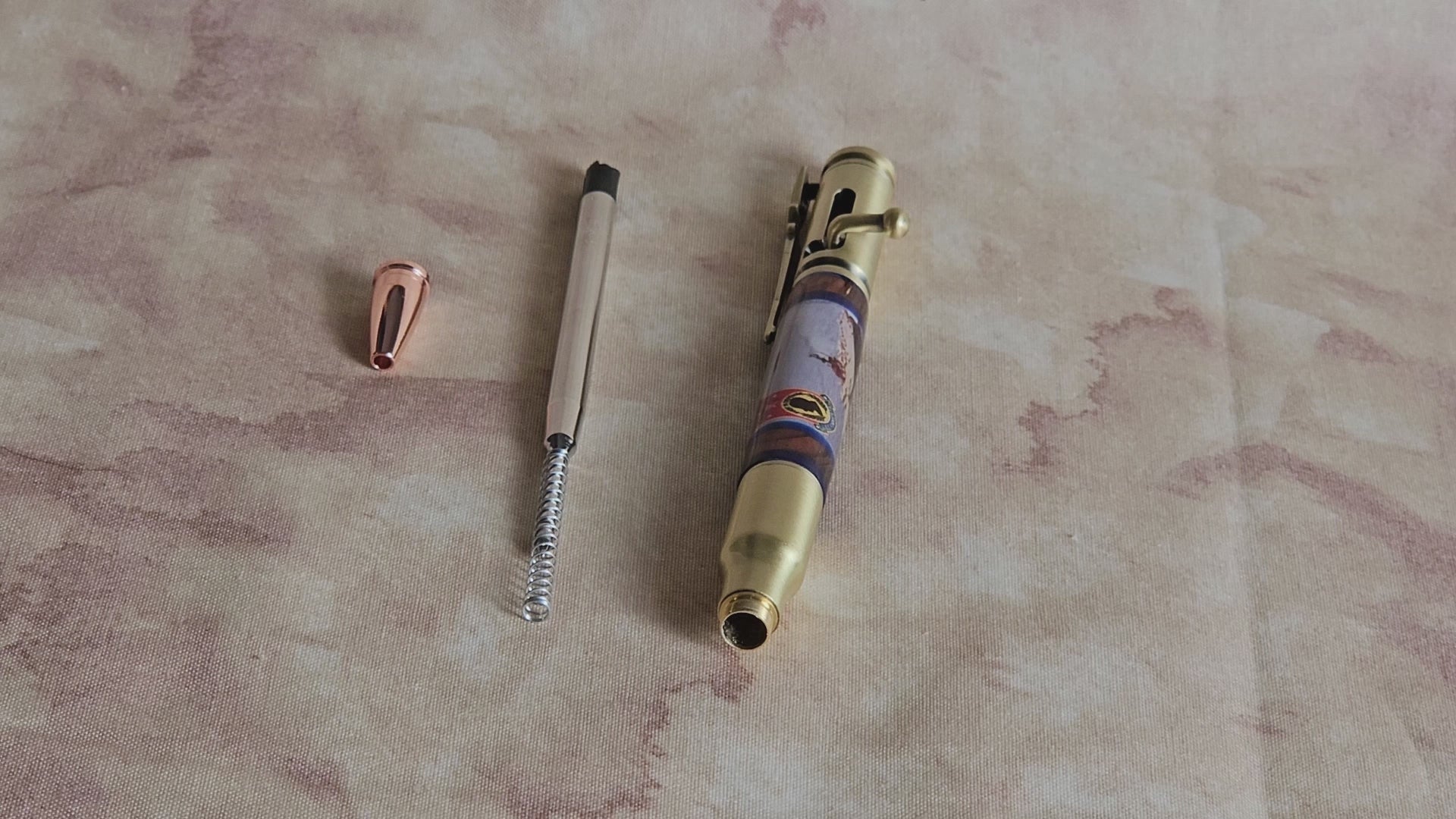 USS Forrestal Ship Pen with a Rifle Antique Brass Kit & Redwood Segmentations from Officer's Country - Unique Collectible Gift
